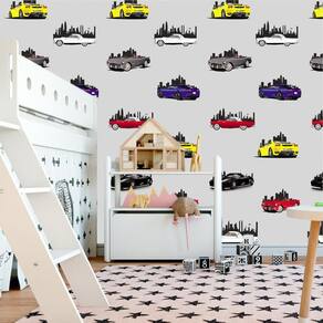 Papel parede carros famosos autocolante lavável sala quarto