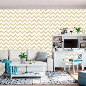 Papel Parede Chevron Amarelo Ouro Branco Adesivo Decorativo
