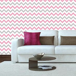 Papel Parede Chevron Rosa Branco E Cinza Adesivo Decorativo