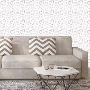 Papel Parede Corações Em Linhas Laranja E Lilás Autocolante