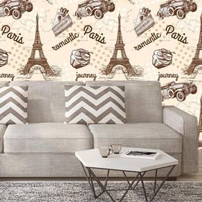 Papel parede paris romântica torre eiffel carro bolo viagem