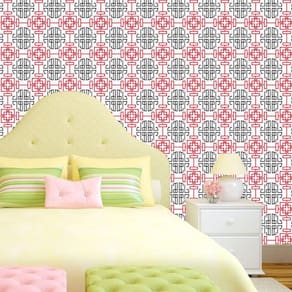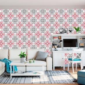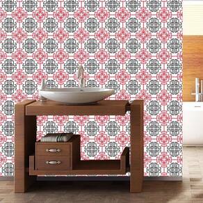 Papel parede quadrados geométrico vermelho e preto adesivo