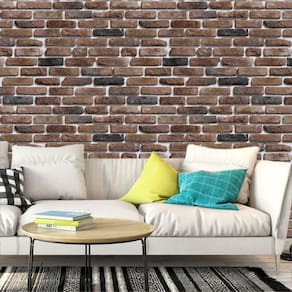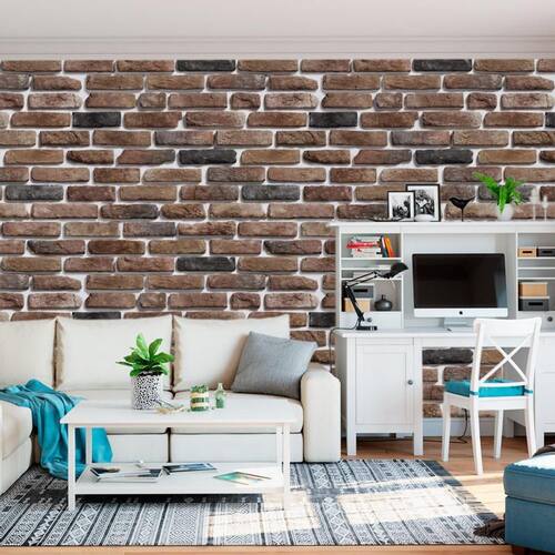 Papel Parede Tijolos Pó De Mico Vermelhos E Pretos Adesivo