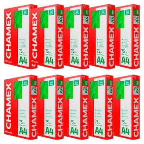 Chamex A4 75g garante ótima performance em todo tipo de atividade, como criar, escrever, imprimir e reproduzir. Com superfície resistente, corte perfeito e equilibrada absorção, permite melhor deslizamento do papel na impressora e evita desperdício de tinta. É produzido a partir do cultivo de eucalipto 100% renovável e as fibras são tratadas para obter o mais elevado grau de brancura.