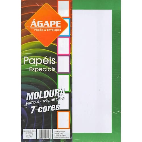 Papel Sulfite A4 Ágape Moldura 120G/M com 35 Folhas para Uso Escolar Profissional e Pessoal Colorido