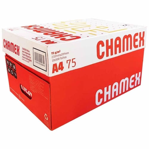 Papel sulfite a4 chamex office, desenvolvido em alta qualidade para , tem superfície resistente, corte perfeito e equilibrada absorção que ajuda no melhor deslizamento do papel na impressora e evitando desperdício de tinta. É produzido a partir de florestas 100% plantadas e renováveis e as fibras são tratadas para obter o mais elevado grau de brancura. Caixa com 5000 folhas 10 resmas com 500 folhas formato a4: 21x29,7cm gramatura: 75g/m