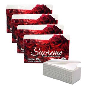 Pacotes com 500g Aproximadamente 1000 Folhas com 2 dobras Medidas: 20CM de largura X 21CM de comprimento. Medidas do papel Dobrado: 10CM de largura x 21CM de comprimento. Contém: 2 dobras. Cor: Branca.