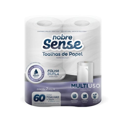 Papel toalha bobina p/cozinha pct c/2 rolos - Nobre Sense Papel toalha bobina p/cozinha pacote c/2 rolos 60 folhas duplas - Nobre Sense