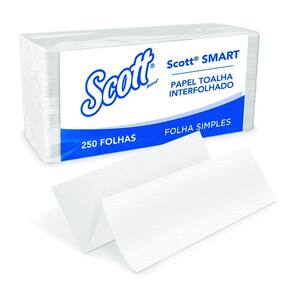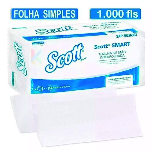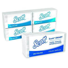 Papel toalha interfolhado kimberly clark scott smart c/1000 papel interfolha 100% celulose 21,5cm x 19,2cm 2 dobras folha simples. Scott smart com 1. 000 folhas. A toalha scott smart é a proposta de secagem ideal para clientes que procuram a máxima economia na secagem das mãos através de um sistema interfolhado da kimberly-clark professional. Produto com a certificação fsc, a qual garante o manejo responsável da matéria prima utilizada na produção de nossas toalhas. Especificações: pacote com 250 folhas em cada. 4 pacotes com 250 folhas em cada 1. 000 folhas no total . Tecnologia clean-cut: o sistema interfolhado dispensa uma folha de cada vez. Ideal para banheiros de baixo e médio tráfego de pessoas. Dispenser kimberly-clark professional tm compatível: dispenser manual de papel toalha interfolhado kimberly-clark professional vendido separadamente . Características: cor: branca. Odor: inodoro. Validade: indeterminada desde que armazenado em local seco . As toalhas de papél kimberly clark professional são compostos por celulose, e por isso são considerados biodegradáveis. Papel toalha que oferece um ótimo custo x benefício ideal para ser utilizado e dosado em dispensers. Indicado para banheiros com baixo e médio tráfego de pessoas. O produto possui a certificação fsc forest stewardship council conselho de manejo florestal , que garante insumos florestais obtidos por meio de manejo florestal responsável fsc c105374 . Marca: Scott Smart