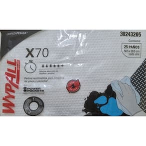 Descrição do Produto: O Wypall X70 é a solução definitiva para limpezas exigentes em ambientes críticos. Composto por 25 panos de alta performance, suas medidas generosas de 58,5 x 39,5 cm garantem uma limpeza eficaz em superfícies diversas.