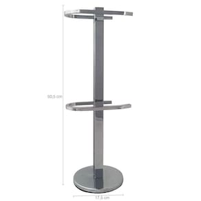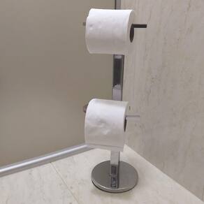 Este porta papel higiênico proporciona um ambiente sofisticado e agradável. Por ser uma papeleira de chão não é necessário instalação, evitando furos nas paredes e possibilitando a troca do seu local a qualquer momento. O suporte porta rolo de papel foi projetado com design diferenciado, proporcionando mais comodidade para você, pois suporta dois rolos ao mesmo tempo. A peça possuí base com acabamento que evita o atrito ou danificação dos móveis e piso. Este porta papel higiênico irá te impressionar não só pela beleza e aspecto brilhante, mas também por sua alta qualidade. Mantenha seu lavabo organizado e com um toque sofisticado.