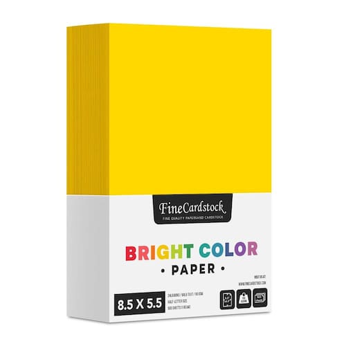 Estes papéis coloridos brilhantes são feitos de papel Bond de 24 libras/60 lb de texto/90 GSM. Cada folha mede 8,5 x 5,5 polegadas (tamanho de meia letra).