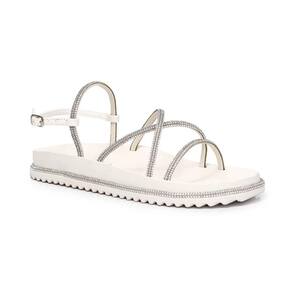 Sandália Papete Feminina Alana Tiras Holli Strass Metalizada Confortável Villa Grife