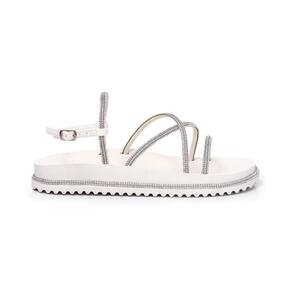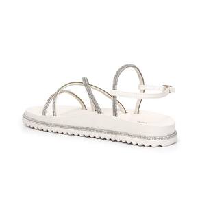 Sandália Papete Feminina Alana Tiras Holli Strass Metalizada Confortável Villa Grife