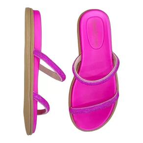 Papete Beira Rio Duas Tiras Strass Feminina Pink 331466