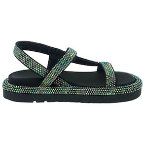 O destaque dessa sandália são as tiras adornadas com strass cintilantes. As tiras, feitas de um material durável e de alta qualidade, envolvem o pé de maneira confortável. Cada tira é cuidadosamente decorada com strass brilhantes, que capturam e refletem a luz, adicionando um toque de glamour e sofisticação ao design.