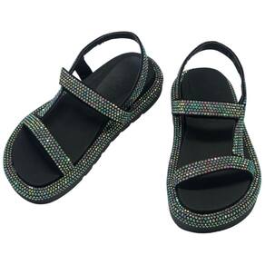 -Estilo Elegante: As tiras adornadas com strass conferem um toque de elegância e brilho à sandália, tornando-a adequada para ocasiões especiais e eventos formais.