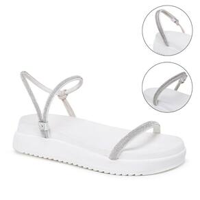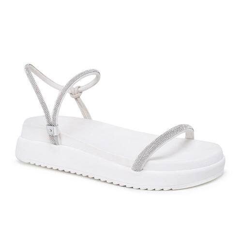 Papete Feminina Brilho Strass Tiras Confortável Casual Verão - 33 - Branco