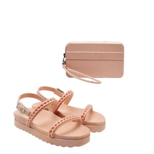 O Kit da Valentina Kister é composto por uma sandália papete e uma carteira moderna. Confeccionados em material micro expandido. A papete possui detalhe em corrente e fechamento em fivela, o que dá bastante charme a peça. Já a carteira possui fechamento em zíper e seu modelo é bem prático para o dia a dia.