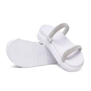 Papete Feminina Tiras Brilho Confortável Verão Dia a Dia - 37 - Branco