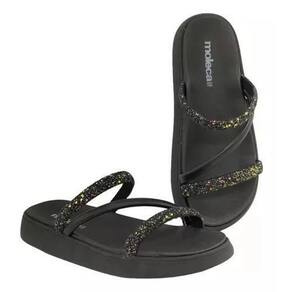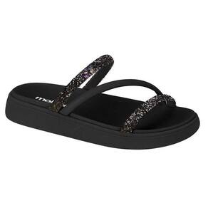 Papete Moleca Três Tiras Strass Multicolorido Feminina Preta 337549