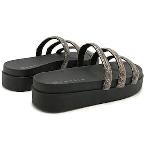 Papete Ramarim Plataforma Três Tiras Strass Feminina Preta 338620