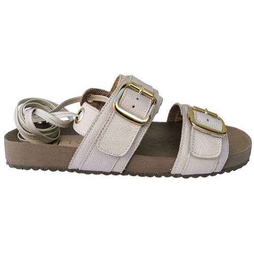 Papete Sandalia Gladiadora Salto Baixo Confort com Fivela - Bege - 34