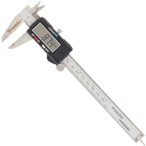 Paquimetro e feito de aco inoxidavel ferramenta. Deslocando cursor movel sobre o haste da ferramenta as medicoes sao mostradas no display LCD. Fonte de alimentacao e uma bateria de 1,5 V, tipo SR44. Erro de medicao e 0,02 mm (100 mm) 0,03 mm (100–200 mm). Embalado em uma caixa de plastico com espuma de borracha que cobre o interior, excluindo a possibilidade de danos devido a golpes e quedas.