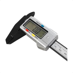 Paquímetro em fibra de carbono e plástico, leve resistente e com alta precisão. Fácil manuseio, visor digital e ótimo acabamento e qualidade Eda. Especificações: - Paquímetro Digital 6 Pol 150 Mm; - Utilizada para medir as dimensões lineares internas, externas e de profundidade de uma peça; - Modelo: 0HB; - Tamanho: 06'' 150 mm; - Faixa de Medição: 06'' 150 mm; - Resolução: 0,1 mm / 0,01''; - Precisão: 0,2 mm / 0,01''; - Amplo display; - Cursor de plástico; - Display de cristal líquido; - Corpo em fibra de carbono; - Acompanha bateria já inclusa; - Tipos de medições: milímetros e polegadas não fracionadas; - Utilizado para realizar medidas externa, interna e profundidade; - Peso: 52g; - Material: Fibra de carbono e plástico.