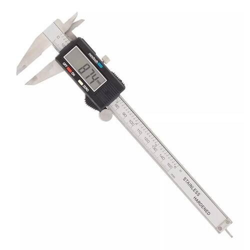 Paquímetro digital é feito de aço inoxidável e funciona através do deslocamento do cursor móvel sobre a haste da ferramenta, mostrando as medições no display lcd. Acompanha caixa plástica com espuma de borracha no interior, indicada para armazenamento do produto e minimizar os danos em caso de golpes e quedas.