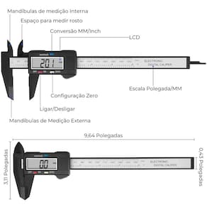 Contém: 01 - Paquímetro Digital 01 - Estojo para armazenar 02 - Baterias (uma contida no paquímetro e uma para troca)