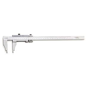 Paquímetro para Serviços Pesados com Bicos Normais Capacidade 400mm/16" Resolução de 0,02mm Digimess 100.043Fabricados em aço inoxidável temperadoFaces de medição internas arredondadasCursor monoblocoEscala e cursor cromados foscoAjuste finoParafuso de fixação da medidaDeslize do cursor sobre guias ressaltadas, impedindo o desgaste da gravaçãoResolução de 0,02mm/.001"