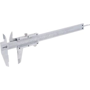Capacidade do paquímetro: 0 - 150 mm / 0 - 6" Graduação : 0,05 mm - 1/128" Exatidão do paquímetro: +/- 0,05 mm Material das faces de medição do paquímetro: Aço carbono Material do corpo do paquímetro: Aço carbono Altura do bico do paquímetro: 40,0 mm Comprimento total do paquímetro: 231,0 mm Altura total da orelha do paquímetro: 21,0 mm Largura da escala do paquímetro: 16,0 mm