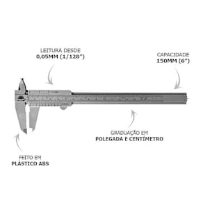 Com capacidade de medição de até 150 mm (6 polegadas), o paquímetro permite medições internas, externas e de profundidade com excelente precisão. Seu sistema de leitura analógica proporciona controle total durante a medição, sendo uma opção prática e eficiente tanto para profissionais quanto para usuários que realizam projetos de DIY (faça você mesmo).