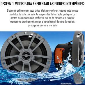 O alto-falante JBL Stage Marine de 6,5" Polegadas está sempre pronto para novas aventuras ao ar livre. Ele reproduz aquela sonoridade que consagrou a marca JBL, dando mais vida ao som. Desenvolvido para suportar o som, sal, maresia e água do mar, o JBL Stage Marine possui estrutura com motor vedado, carcaça resistente de polímero à prova de UV e guarnições de borracha. O cone de polipropileno e o tweeter em domo balanceado proporcionam graves densos, agudos suaves e volume encorpado, para você ouvir cada nota com total clareza.