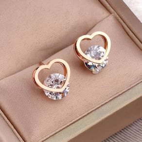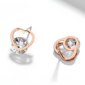 Par de brincos coração celine banhado a ouro rosê em aço inox