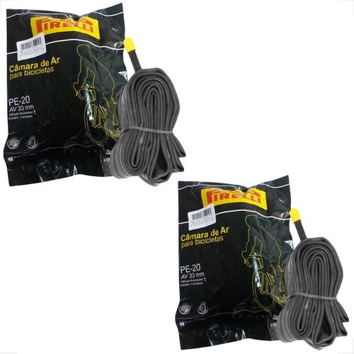 Itens inclusos: 2 unidades Câmara De Ar Bicicleta Aro 20 Pirelli Bico Grosso 33mm