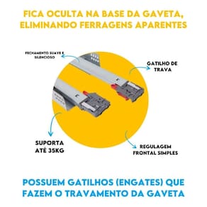 Corrediça Telescópica para Gavetas Pequenas 50cm 500mm Possui sistema Soft Closing Gaveta aberta, fecha no amortecimento seguro e sem ruídos, ideal para gavetas de armários, escrivaninhas, cômodas e móveis compactos. 50cm - Perfeito para gavetas menores e nichos compactos. Benefícios da Instalação = Fechamento com amortecimento ao final do percurso da gaveta leve e silencioso, facilitando o uso diário. = Otimização de espaço, ideal para gavetas menores e de fácil acesso. = Fixação segura, garantindo mais estabilidade e resistência. do vendedor: 90 dias Marca: Não Informado Ean: 7893728859011