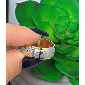 Lindo Anel em Aço Dourado Com Oração do Pai Nosso Em Português