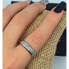 Lindo Anel em Aço Inox Prata Com Oração do Pai Nosso Em Português Acompanha Caixa Em Veludo