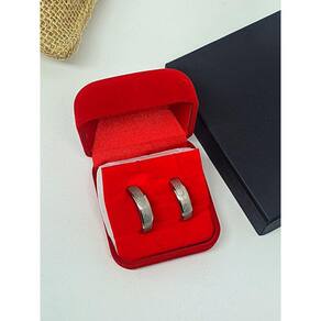 Par de Aliança Compromisso Oração Pai Nosso em Português Aço Inox 316L Prata + Caixa Estojo Veludo Caixinha porta jóia