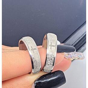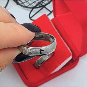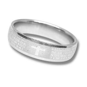 Lindo Anel em Aço Inox Prata Com Oração do Pai Nosso Em Português