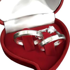 Par De Alianças De Compromisso Prata 4Mm Fina + Solitário