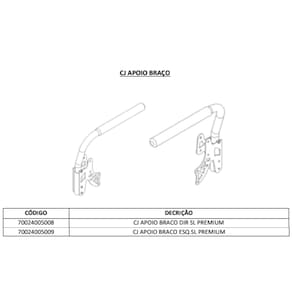 Contém: 01 Conjunto do Apoio de Braço Tubular da Cadeira de Rodas Star Lite Direito e 01 Conjunto do Apoio de Braço Tubular da Cadeira de Rodas Star Lite Esquerdo