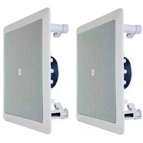 O par de arandelas JBL 6FR1Q é a solução descomplicada para resolver os problemas de som ambiental, com instalação rápida e fácil em ambientes como: hotéis, restaurantes, aeroportos, shopping centers, escritórios, consultórios e salas de recepção. Oferece integração com o ambiente através de design otimizado para rápida instalação embutida em forros e paredes. Moldura em plástico e tela frontal em alumínio resistente à oxidação.