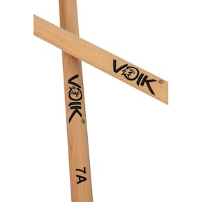 Especificações • Marca: Voik • Modelo: 7A • Madeira: Maple • Formato da Ponta: Oval • Diametro da baqueta: 1,8 mm • Diamentro da ponta da baqueta: 0,8 mm • Comprimento: 39 cm • Peso do par: 64 g