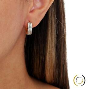 Compre com segurança sua joia brinco argola cravejado 3 fileiras zircônias cristal 15mm x 4. 8mm losangos atrás banhado a ouro 18k