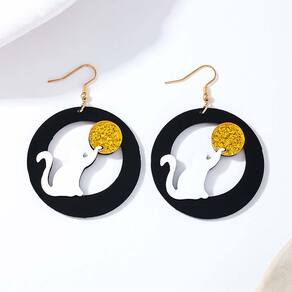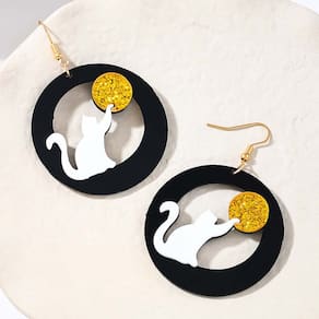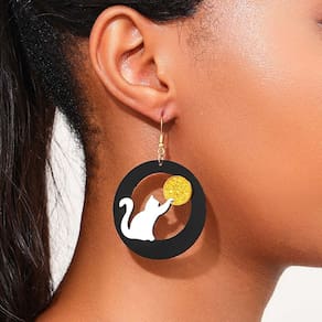 Par de Brincos Argola Preto e Branco Gatos Feminino Grande