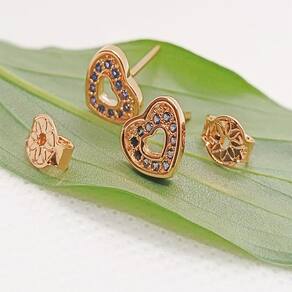 ESPECIFICAÇÕES DO PAR DE BRINCOS CORAÇÃO COM ZIRCÔNIA AZUL FOLHEADO RONNELLY: