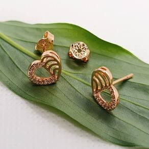 ESPECIFICAÇÕES DO PAR DE BRINCOS CORAÇÃO VAZADO COM ZIRCÔNIA BRANCA FOLHEADO RONNELLY: